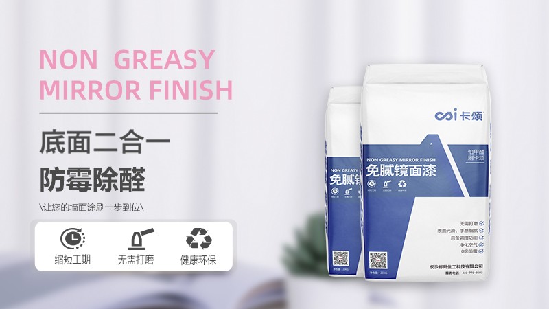 - 本產(chǎn)品原材料主要有碳酸鈣、無機膠凝材料、炭硅復(fù)合分子篩、氨基除醛因子、高效防霉因子等。是一款綜合了膩子、乳膠漆及功能涂料三者功能的“平民凈化產(chǎn)品”。在毛坯墻面上批刮2-3遍卡頌免膩鏡面漆,無需再面涂乳膠漆等其他涂料,即可完成從底到面的墻面裝飾,實現(xiàn)膩子找平、乳膠漆裝飾、耐洗刷、凈化室內(nèi)空氣等多重功效,省時省力更省心。卡頌免膩鏡面漆具有縮短工期、無需打磨、健康環(huán)保、防霉抗菌、防火阻燃、手感細膩、呼吸調(diào)濕、防開裂等特點。