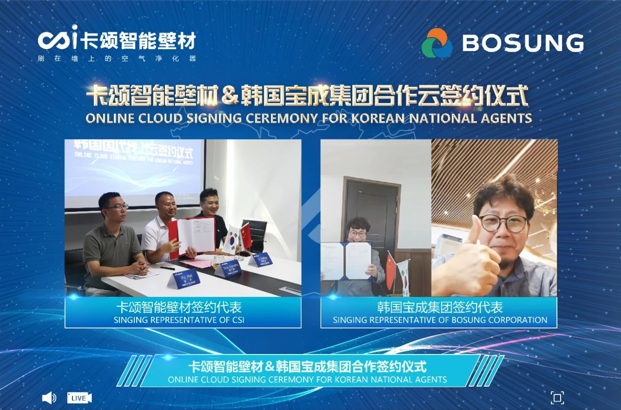 其實(shí)早在去年,卡頌智能壁材就與韓國(guó)寶成集團(tuán)達(dá)成合作,因疫情影響,雙方面對(duì)面簽約的儀式一直延遲,目前全球疫情仍不容樂(lè)觀,經(jīng)雙方協(xié)商,簽約儀式改為線上云簽約的形式舉行,雙方合作進(jìn)一步深化。