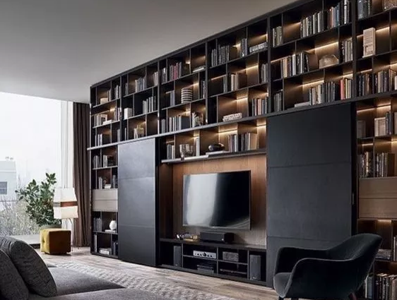 大家在裝修的時(shí)候,能夠安裝一面超級(jí)大的電視背景柜。但,絕不是下圖這樣的!這個(gè)撐死打59分。你說(shuō)它好看,那確實(shí),尤其是這黑色系配上泛黃的的黃光燈,整個(gè)空間神秘又典雅。你說(shuō)它收納能力強(qiáng)大,也確實(shí),明眼人都能看到這么多分割柜。